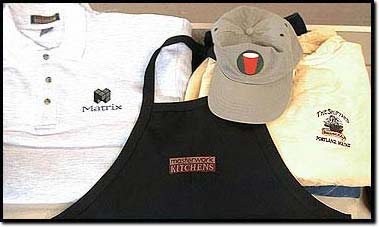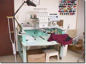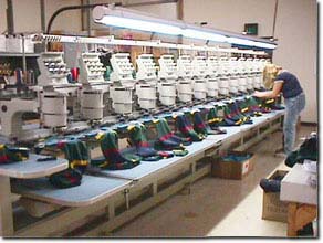 Embroidering: Once the design has been digitized and approved, the disk is loaded into the embroidery machine's computer. The garment is then hooped, placed on the machine, and embroidered. Each garment is inspected thoroughly before being steamed, folded, boxed, and shipped. |